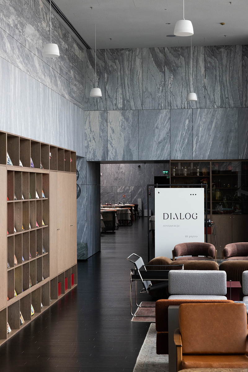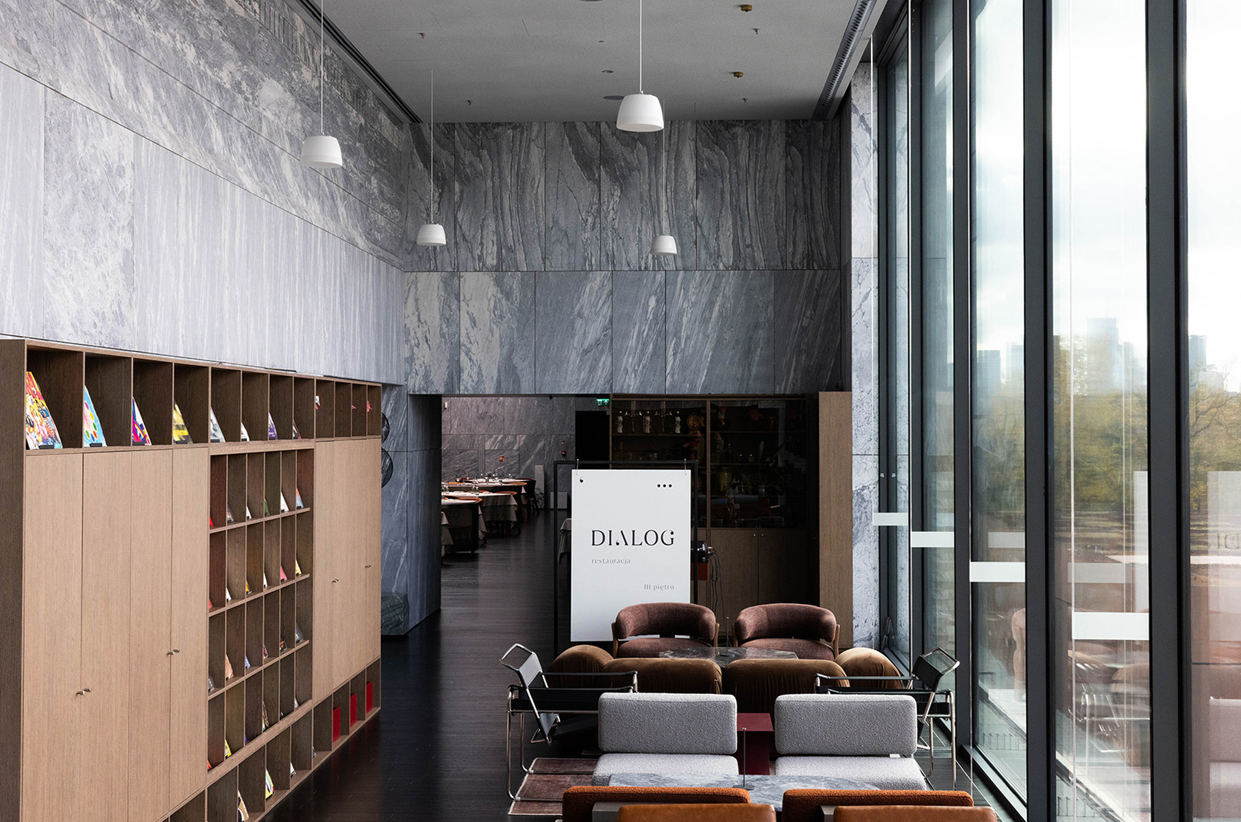 One standout project is the Polish History Museum in Warsaw, a monumental building covering 45,000 square metres. Within its striking marble architecture, the "Dialog" restaurant mirrors the building's bold design language, with interiors heavily clad in stone slabs.