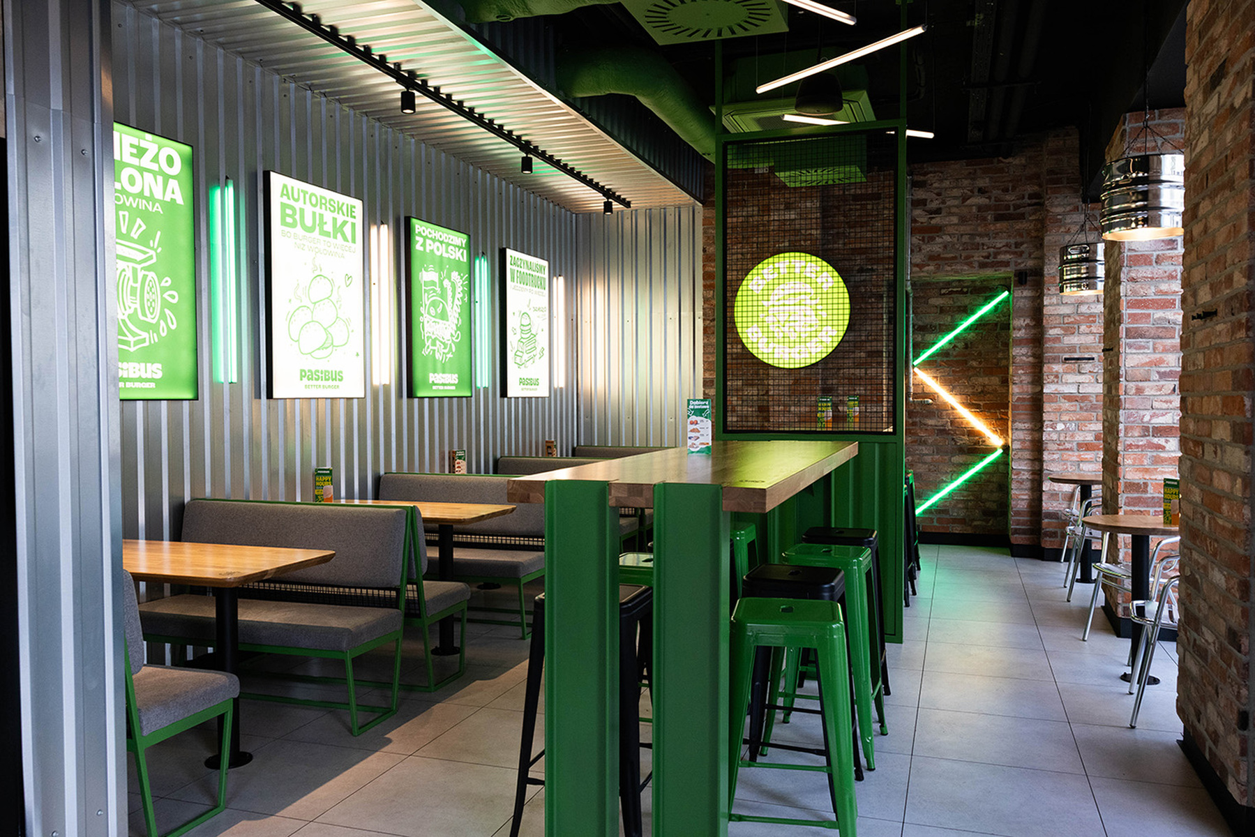 Located on Warsaw's prestigious "Royal Route" (Nowy Swiat), a Pasibus site brings the brand's signature street-food energy into a historic setting. The interior combines the raw, industrial aesthetic of the burger chain with the constraints of a high-traffic urban venue.