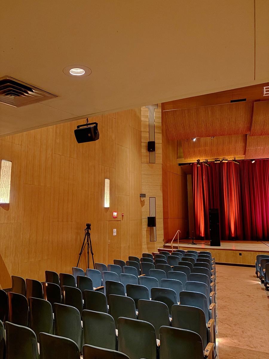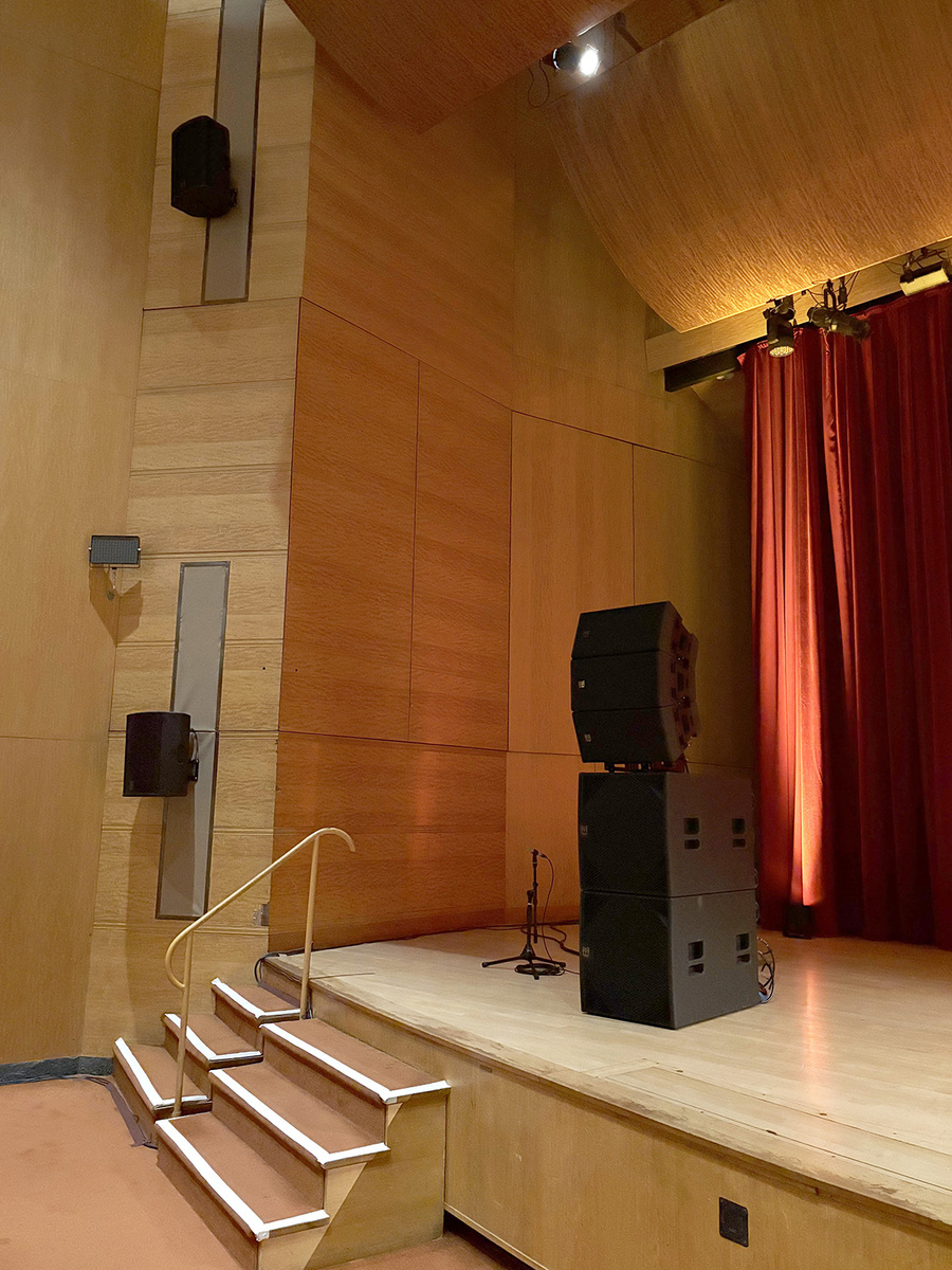 Yet, as the auditorium's programming evolved, so too did its audio demands. The legacy sound system previously installed - early-generation powered column speakers positioned only on the left and right sides of the room - delivered severely uneven coverage, with significant gaps across both the floor and balcony. It was barely adequate for lectures and simply unsuitable for contemporary musical performances.