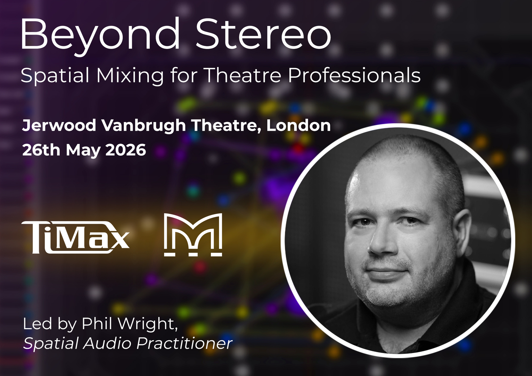 TiMax and Martin Audio have announced a half-day industry event, called Beyond Stereo: Spatial Mixing for Theatre Professionals. Hosted at RADA's JVT Theatre (Jerwood Vanbrugh Theatre) on 26th May 2026, the session is free to attend and all theatre professionals are welcome to register.